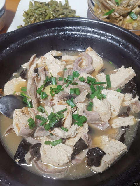 猪肚豆腐汤小青菜野生小鱼,亲戚自己钓的估计钓了半天焖豆