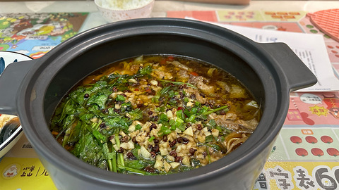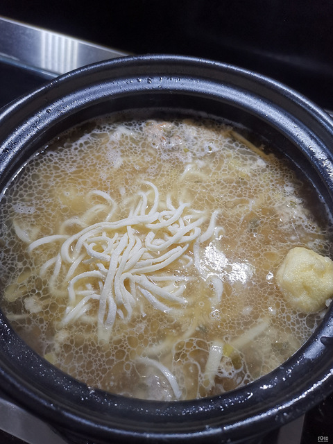 一之前做的肉圆,火锅吃剩的乌鸡卷再来点小青菜,油泡……用砂锅煮个面,砂锅煮出来的汤汁浓郁,还是很好吃的就是太难洗锅了!!!