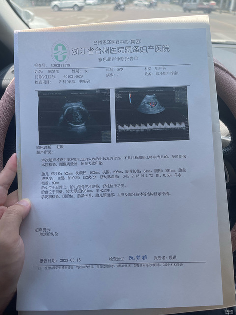 预产期:2023.6.6建卡医院:当地卫生院产检医院:卫生院、黄岩椒江妇保院、台州妇女儿童医院胎宝宝小名:跳跳生产医院:台州妇女儿童医院B超照片照片一张