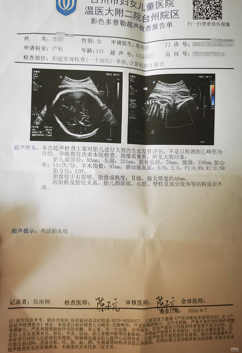预产期:2025年4月11日 建卡医院:葭沚卫生院 产检医院:台州妇女儿童医院 宝宝小名:小肉球 生产医院:台州妇女儿童医院 B超照片: