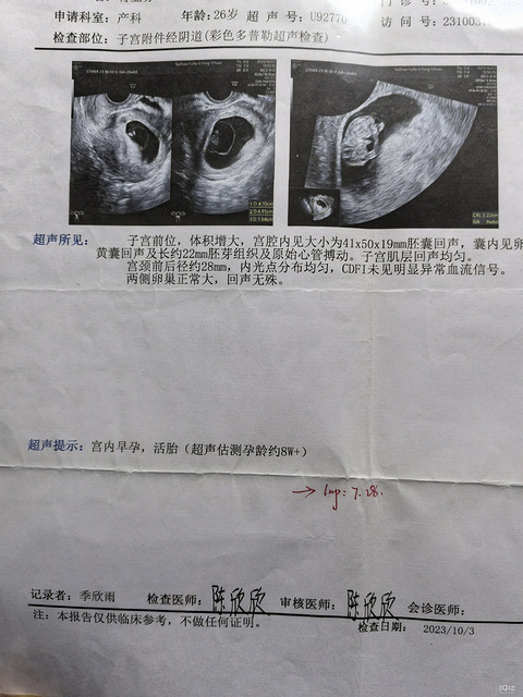 产期:2023.07.29(大概吧,推算出来也不一定准)建卡医院:(还未建卡)产检医院:黄岩妇幼胎宝宝小名:不知啊生产医院:未定说起来,我的大姨妈一直不准确,因此就抱着随缘的心态,叶酸啥啥都没吃。在姨妈整整一个月没来的时候我感冒了(可能是怀孕引起的现象),又吃了感冒药。过了半个月姨妈还不来,我才觉得是不是要测一测。果然,两条杠,还很明显,就去了医院。