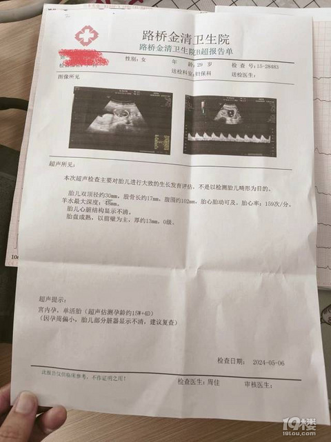 预产期:十月建卡医院:金清卫生院产检医院:路桥妇幼医院宝宝小名:崽崽生产医院:椒江妇女儿童医院B超照片: