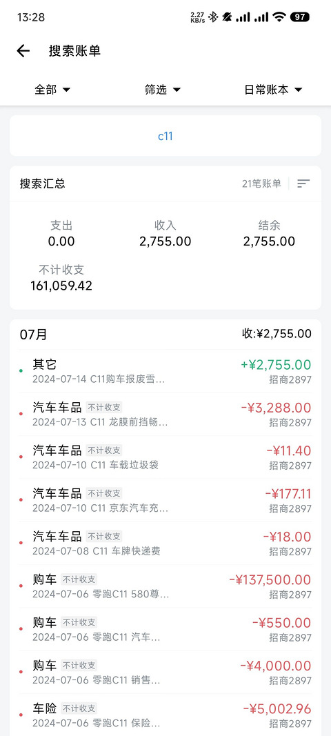 1、车型:2024款C11 580尊享版选配详情 松岚灰外观|岩灰+雾紫内饰|20英寸20幅陨石灰轮毂2、价格:落地13+3、家庭人口:34、购买时间:2024.7.6 提车一个月了,稍微讲下花的钱和驾驶感受。字数有点多,希望给有意向的兄弟一点干货。第一节:花费与补贴配置是24款C11580尊享不加选装包,全款,定金5000+尾款137500+上牌550+保险5000=148050但是,销售提前让
