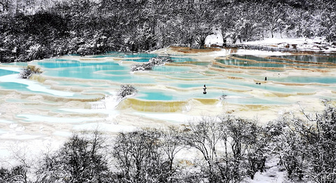九寨黄龙,是早就该去的了。17年就预定过行程,因雪封闭景区未能成行。去年从甘南去了阿坝花湖,离九寨沟就一步之遥,也因时间紧,未能前往。这次去成都办点事,挤出两天时间,终于踏上了九寨黄龙的神奇土地。 黄龙的初冬,在这个季节,黄龙沟内的彩池在低温下依然保持着碧绿的色泽,仿佛是大自然精心雕琢的翡翠镶嵌在山谷之间。阳光透过稀薄的云层,洒在这些彩池上,使得池水波光粼粼,流光溢彩,宛如一串串流动的翠玉项