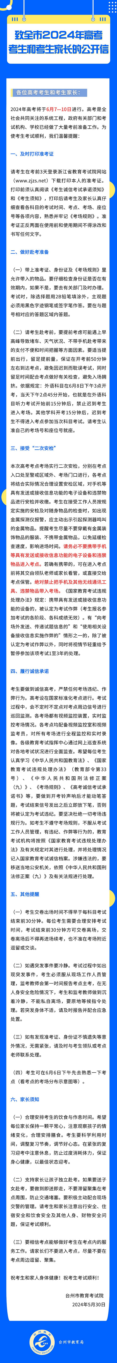 致全市2024年高考考生和考生家长的公开信