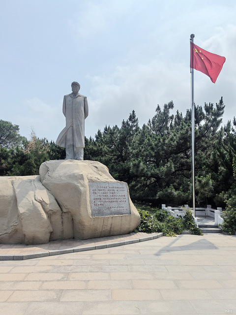 一 本次秦皇岛的行程,用半天时间,安排了鸽子窝公园和西港花园两个公园的游览。 鸽子窝公园的名气大,是沾了主席的光。1954年夏天,主席来到鸽子窝一带游览,当时大雨倾盆、海浪翻涌,主席触景生怀,抚古问今,创作出了著名的《浪淘沙·北戴河》。这首词的上阕“大雨落幽燕,白浪滔天,秦皇岛外打渔船。一片汪洋都不见,知向谁边?”生动描绘了当时北戴河风雨中的壮阔海景;下阕“往事越千年,魏武挥鞭,东临碣石有