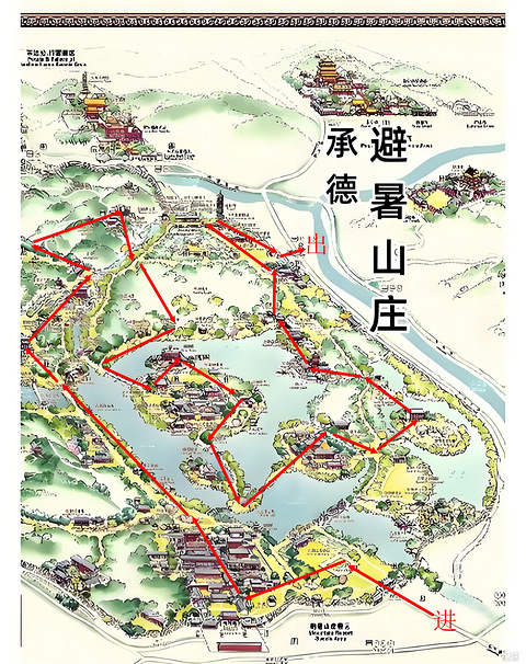 1、游览路径 这次去坝上草原的行程中,包括秦皇岛和承德。跟团游,行程限制得太死,游览的景点导游多要精减缩水缺斤少两,旅游成了打卡,我很不喜欢跟着导游走。到了承德避暑山庄,我想自己游览,导游说没有我的解说你不白来了吗?我说我要游览的是我心中眼里的风景,而不是您口中的风景,我更想自己去深度体验。在我一再的争取下,导游终于答应让我自己走,到点准时集合就行。三个小时,景区的主要景点我基本都走到了。以下是