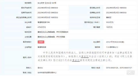 【土拍直击】黄岩同成置业底价4.76亿拿下北师大附中旁地块