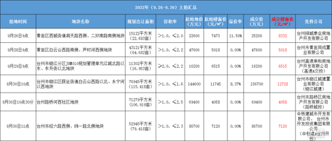 国庆节前(9.26-9.30)的一个星期台州六宗涉宅地块进行网拍涉及椒江、黄岩、路桥、台州湾新区多个地区总吸金40.18亿! 你最看好哪块地呢