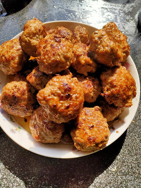 自制美食名称:肉圆需要的材料:猪肉难易指数:3星。(5星:非常难4星:有点难3星:一般2星:简单1星:手残党都会)制作注意点:最好是纯肉的,不要加任何粉,不然为不够鲜美四斤五花肉,去皮,去掉一点肥肉,这次做的肥瘦比例是2:8,五花肉切块,太多了,不想手剁太累,用了绞肉机打了好几次呢好了,加白糖,盐,老酒,鸡精,加水超一个方向使劲搅上劲,我差不多三斤多肉肉,加了半斤水差不多,分了四次加,搅上劲再加水