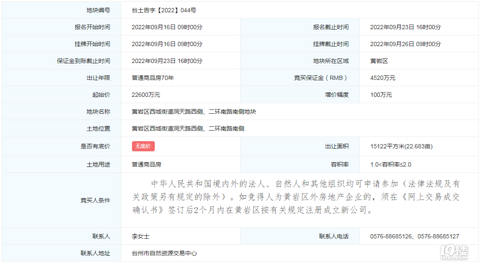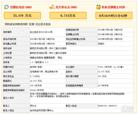 【土拍直击】楼面8332!黄岩方山下未来社区旁地块2.52亿成交