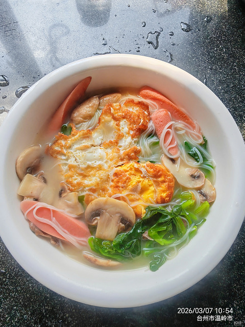煎个荷包蛋,火腿肠煎一下,放蘑菇炒一下,加热水,加点盐煮开放米面煮两分钟,再放入菠菜,煮两分钟就可以了