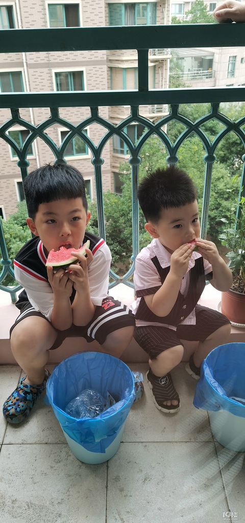 两个娃特别喜欢吃西瓜,每次吃西瓜都是狼吞虎咽的,这不,两个人在阳台上一人“趴”一个垃圾桶就开吃了,这样也好,西瓜汁不会流在衣服上,西瓜子可以直接吐在垃圾桶里[ej=1F604]