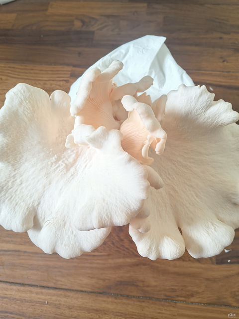 19楼领的奖品,两盆熊猫小菇,开始第一次神奇的体验啊。 女儿先来体验红平菇,先是纸巾盖住,湿水,大概到第五天的样子,突然出蘑菇了,然后第六天,一天天长大,今天第七天很膨胀了,太神奇了,女儿说太好玩了太神奇了。但是不敢吃,哈哈,看看就好 女儿种的平菇 真的好大了可以摘了她说我是不敢吃的,看看菇就好