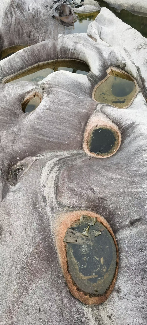 湖北省黄冈市罗田县河铺镇金盆地冰臼群,全长约二公里。冰臼是一种自然景观,形成于大约三百万年前的第四纪冰川时期,是中国第四大冰臼群,其规模和面积、形态仅次于内蒙古大青山、北京延庆和江西遂川冰臼群,是我国中部地区最大的自然界奇观。