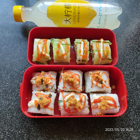 好久没有做寿司了,都快忘了怎么做的,家里没有寿司海苔,那就不用吧!试了下用黄瓜卷寿司,看着还行,再来一个白米饭的,卖相不行,口感还不错,希望不要差评!