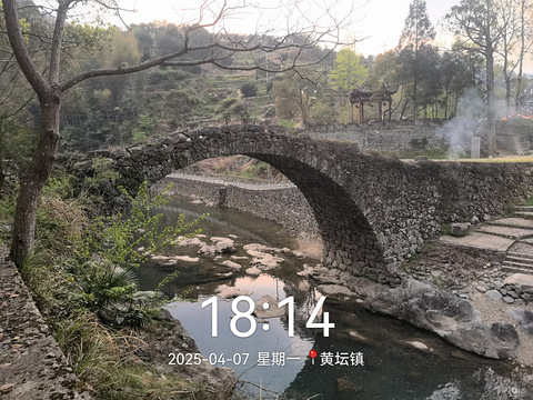 从括苍山九台沟南侧的古村黄石坦,沿着柴古唐斯括苍越野赛赛道一路爬升到达海拔1200多米的括苍山九洞尖。在山顶观赏杜鹃花美景后,沿着括苍山脊山道一路观景前行经猫鱼岩走向跑马坪。从跑马坪云海山庄沿括苍云径步道下行,一路观赏九台沟景区美景返回徒步起点黄石坦,完成环线徒步观花赏景之行。 一大早出发,经方溪水库来到括苍山深处的黄石坦古村,在游客中心前面停好车后开始了一天行程。走过村口跨溪桥,进入通往