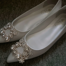 平时不穿高跟鞋,为了准备婚鞋可是选了好久