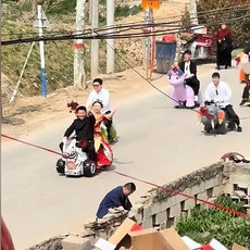安徽一对新人用摇摇车当婚车,两家直线距离不到一公里